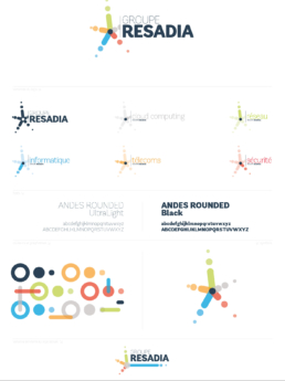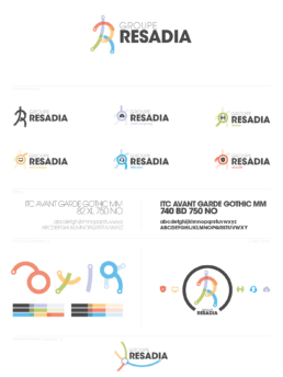 Création de l’identité visuelle du groupe Resadia. propositions de logos , formes et couleurs, font.
